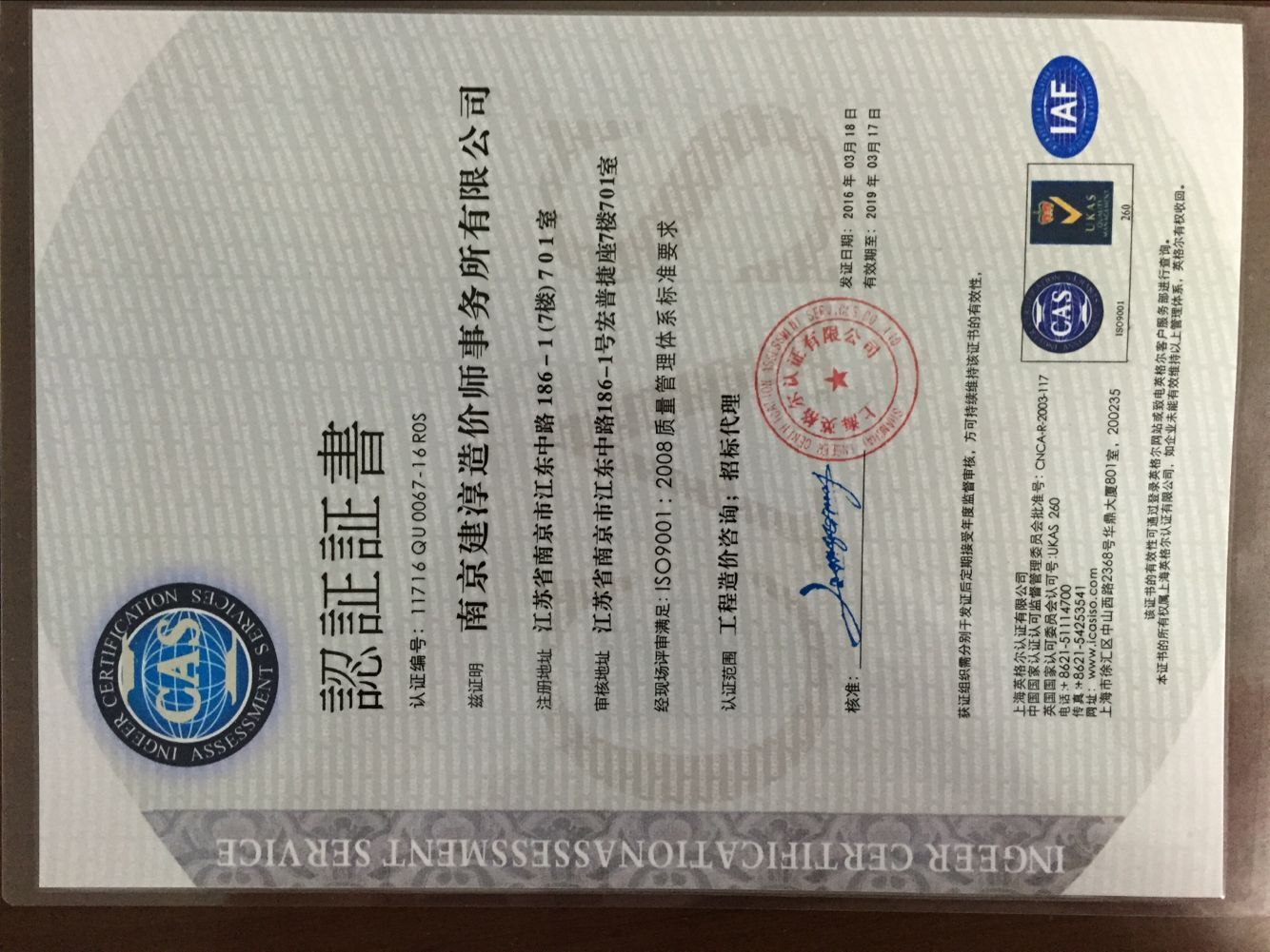 經(jīng)現(xiàn)場評審滿足:ISO9001:2008質(zhì)量管理體系標準要求 認證范圍:工程造價咨詢、招標代理 有限期至2019年3月17日【詳細】