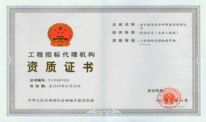 工程招標代理機構(gòu)甲級資質(zhì)證書